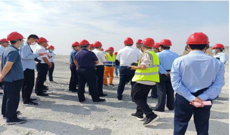 在現(xiàn)場的檢查指導工作中,兗州中材項目經(jīng)理康斌分別將現(xiàn)場施工情況及安全生產(chǎn)保障措施向市委市政府領導做了詳細講解,對在“國慶節(jié)”和“二十大”期間的安全生產(chǎn)做了詳細的工作安排匯報,并對安全生產(chǎn)做出了保障承諾。